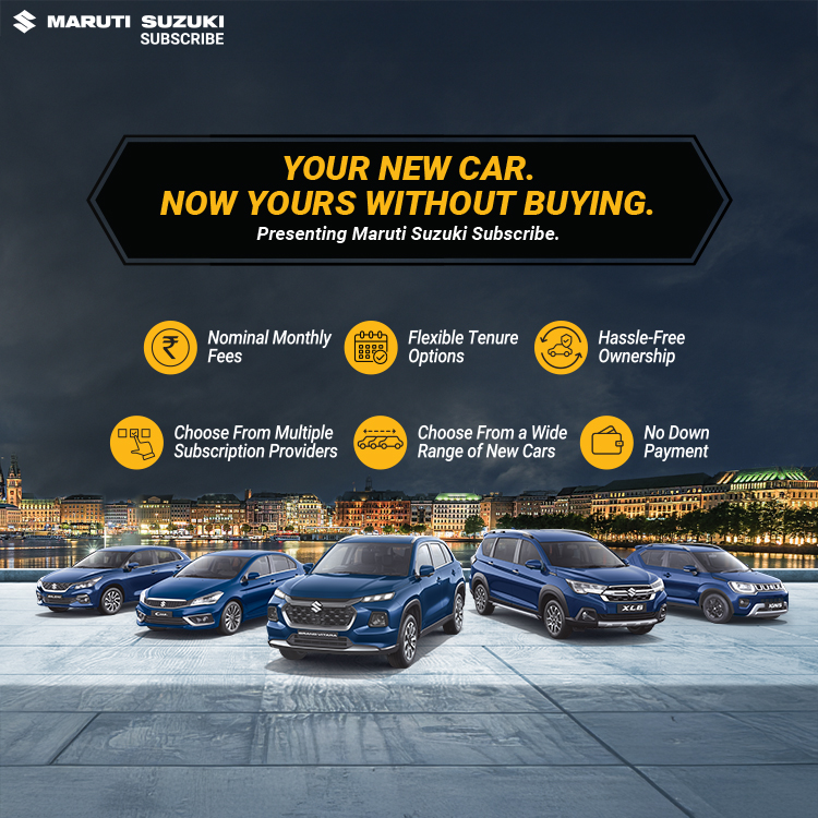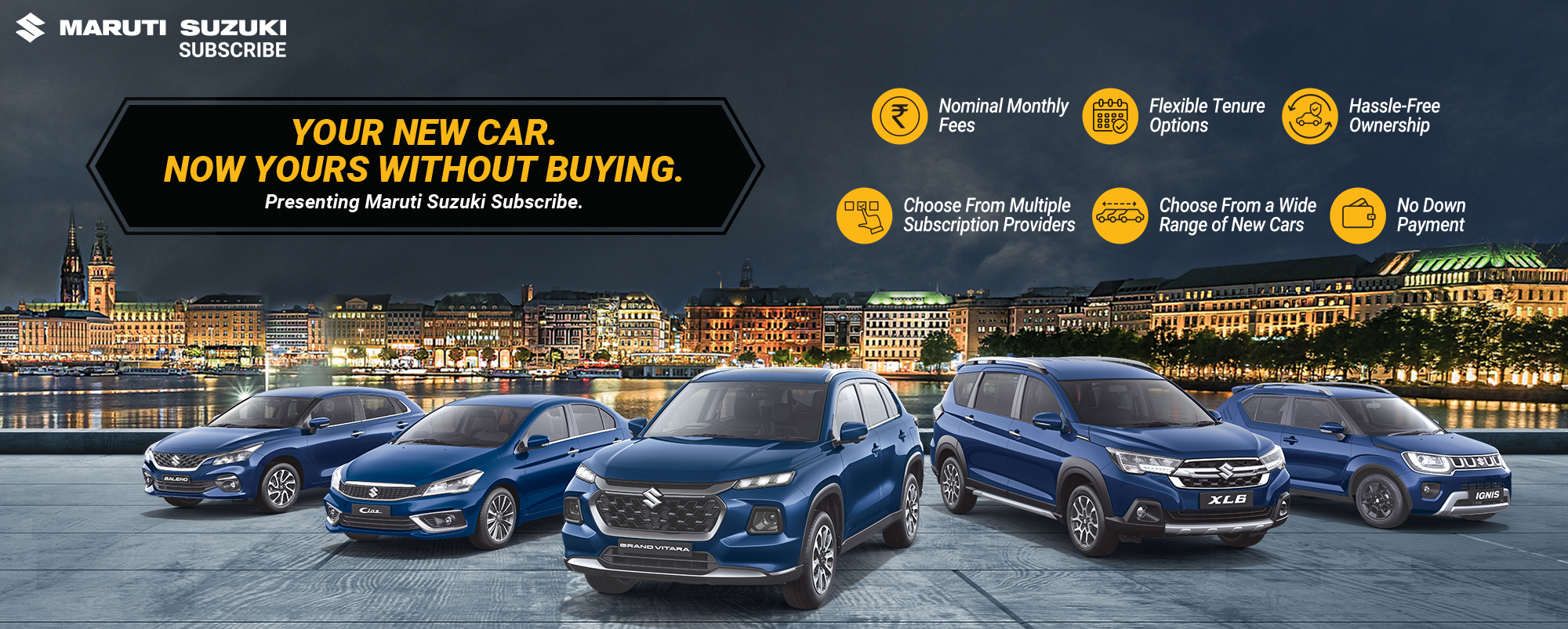 Located in Agra, Prem Motors offers a plethora of options of Nexa cars for Maruti Suzuki Subscribe. You can choose your desired Maruti Suzuki car and drive it home at nominal monthly fees for a variety of flexible tenure periods. Whether you prefer Hatchback, Sedan, SUV or even MUV you are sure to find it at Prem Motors, Artoni with an easy Maruti Suzuki Subscribe plan.